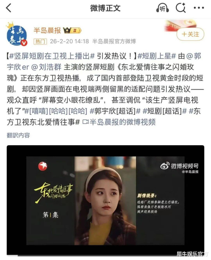 而在短剧、漫剧竞相争夺用户眼球之余,《东北爱情往事之闪婚玫瑰》在东方卫视黄金时段的亮相,也成为了今年短剧春节档最具象征意义的事件之一。