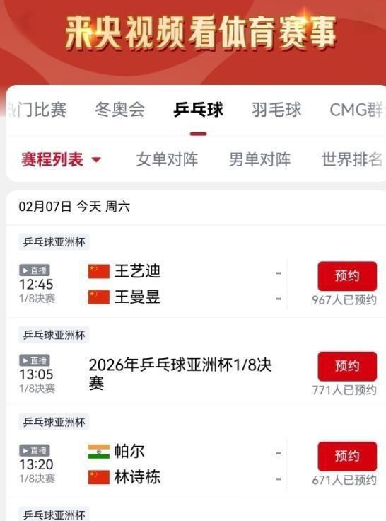 央视为本次亚洲杯提供了全面的直播覆盖。 CCTV5频道在下午时段13:05-15:00直播部分场次,包括王曼昱、王艺迪、陈幸同和林诗栋的比赛。